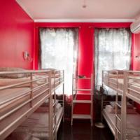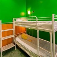 The air-conditioned dormitories at Bear Hostel on Mayakovskaya feature brightly coloured walls. The shared bathrooms are located in the hallway.